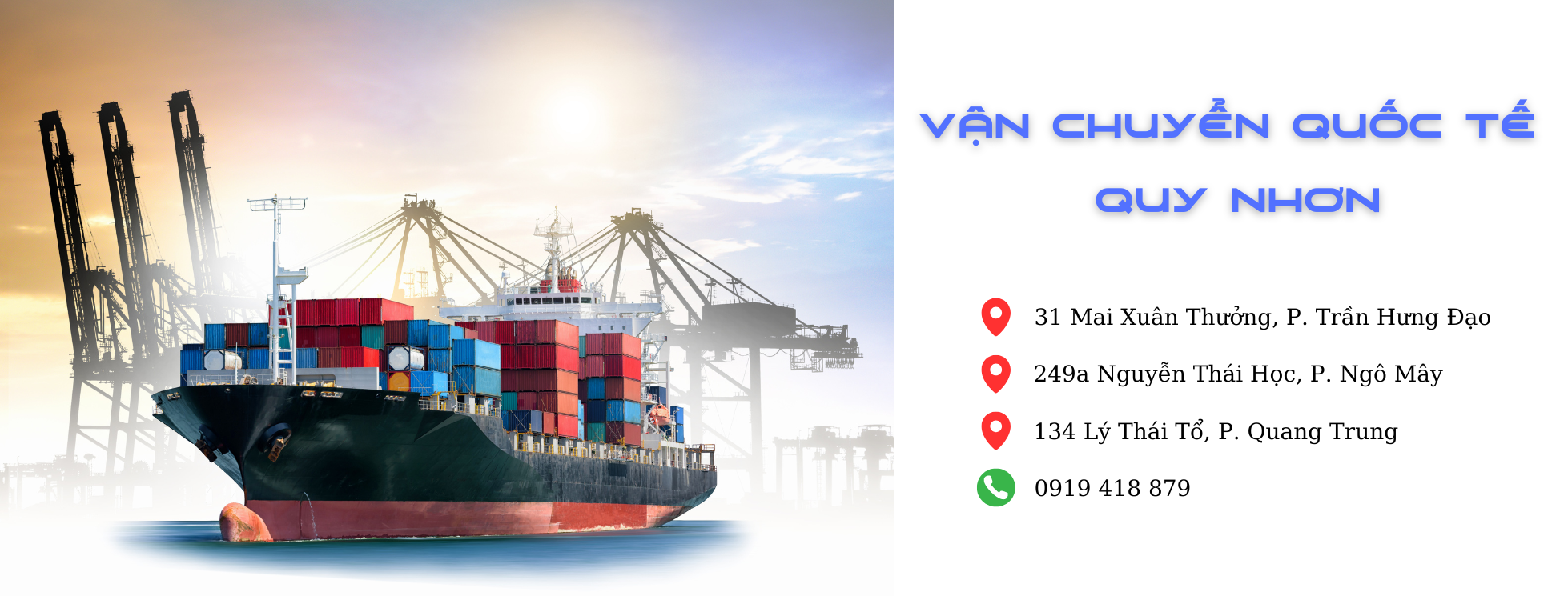 Chúng tôi thực hiện dịch vụ vận chuyển hàng hóa trên toàn quốc bằng đường bộ, đường hàng không, đường biển với mọi tuyến đường theo nhu cầu của khách hàng. Ngoài ra, chúng tôi còn có nhiều dịch vụ vận chuyển khác để phục vụ khách hàng.
